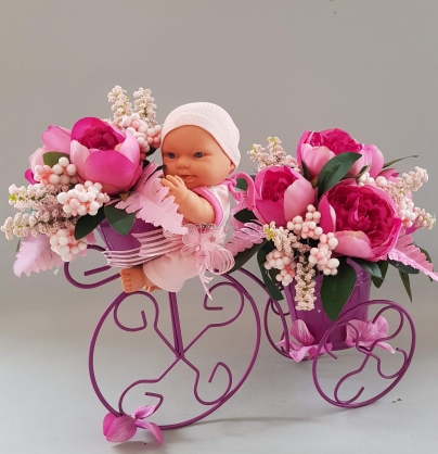 Bisiklette Orkideli Kız Bebek Çiçeği